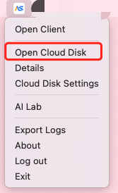 Option 1: Click "Open Cloud Disk" in the system tray menu.
