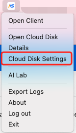 Access the configuration interface by selecting [Cloud Disk Settings] from the system tray menu.
