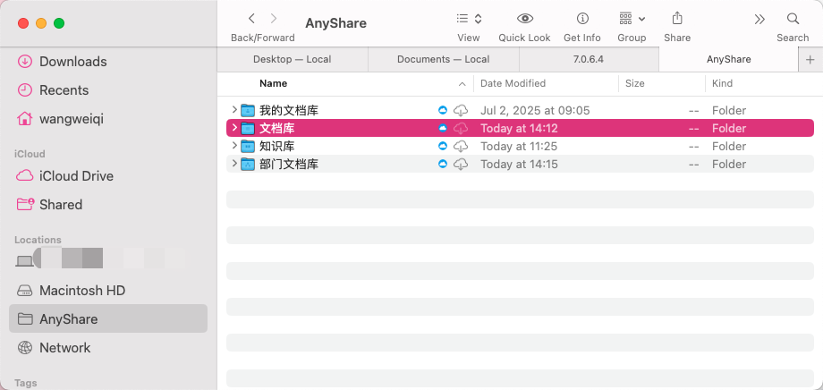 Once enabled, you can access categorized documents within the AnyShare directory.