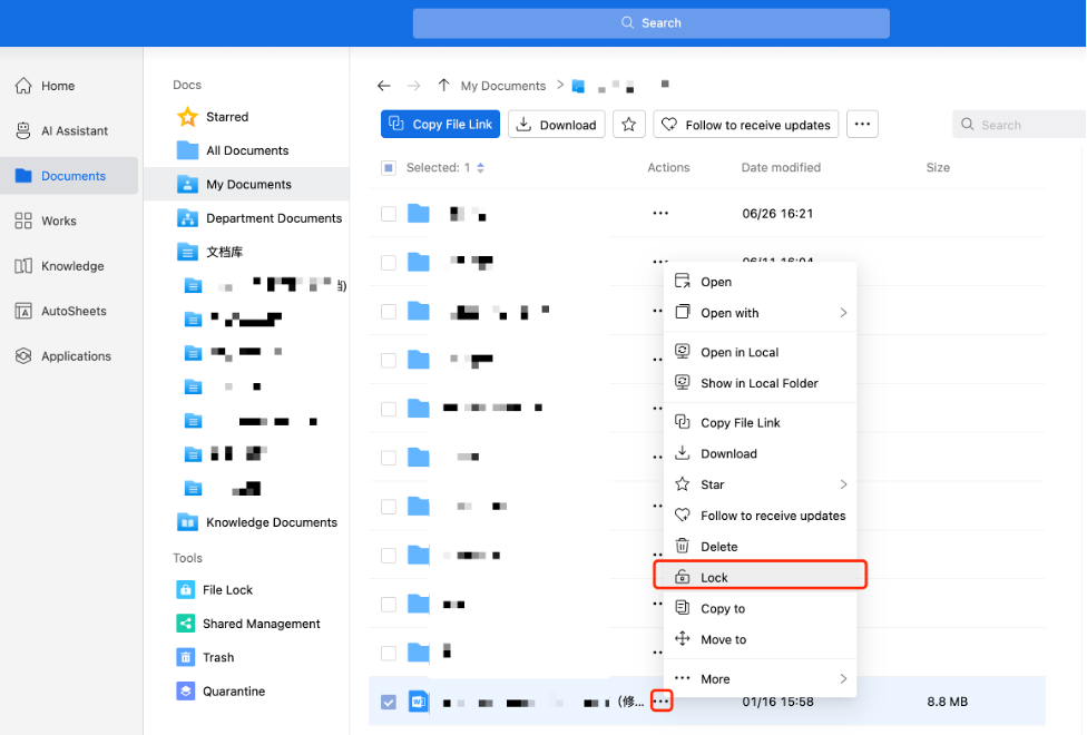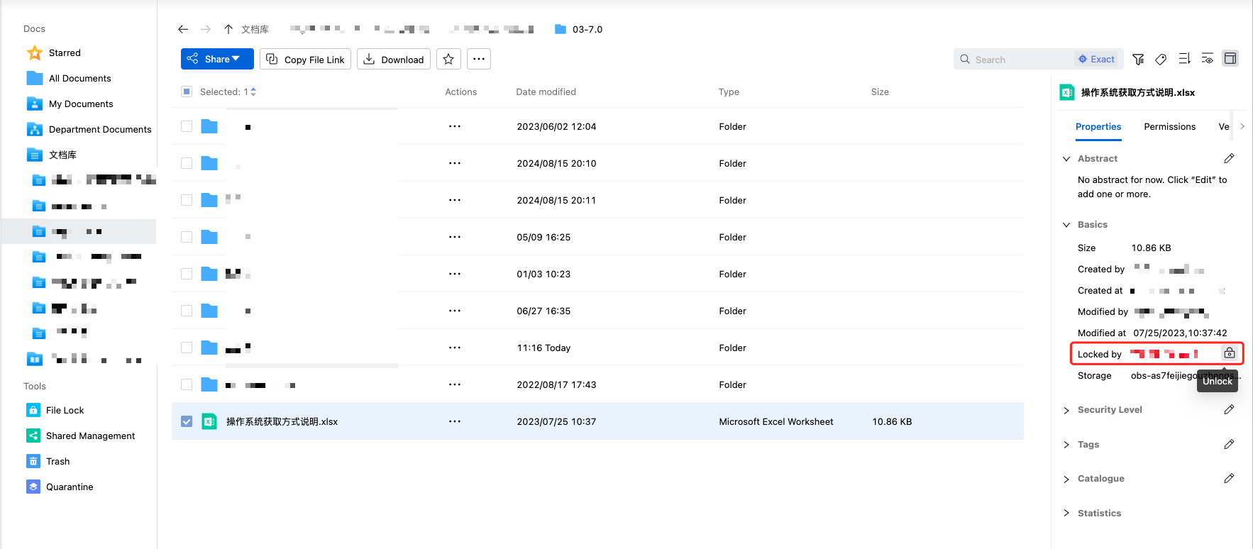 1) File locked – If you own the file, click [UnLock] to unlock it. If not, contact the locker to release it.