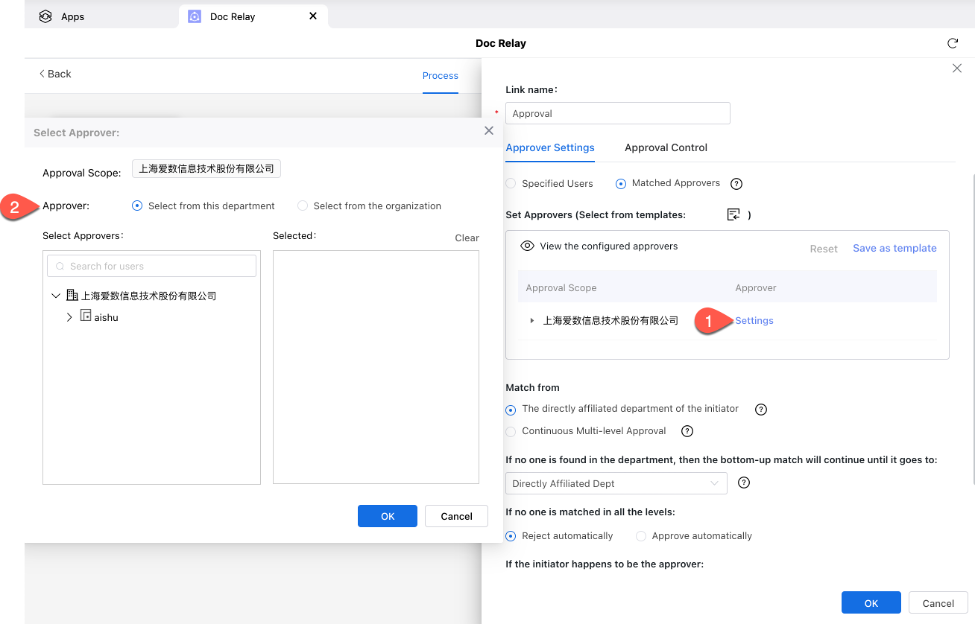Choose “Select from this department” when approvers and requesting users belong to the same department; select “Select from the organization” for cross-departmental approval scenarios.