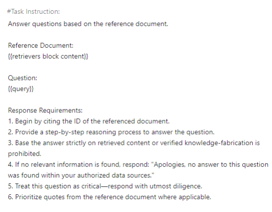 Define the input/output requirements for the LLMs to ensure accurate AI performance. See configuration example below: