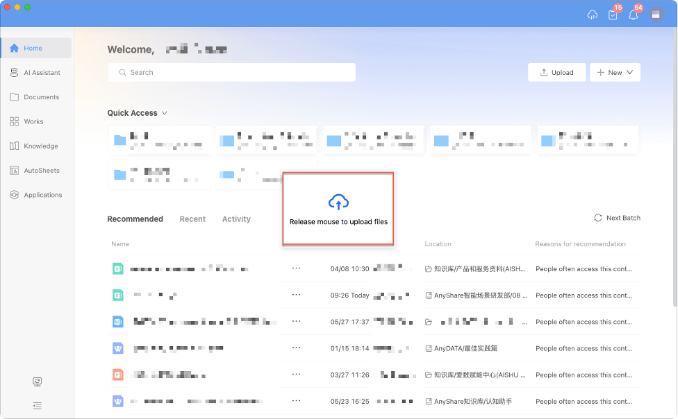 Tips: Recommendations become more accurate with continued AnyShare usage.