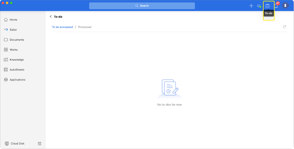 Users can access pending tasks through [To-do] in the top-right corner and view personal reminders through [Notification].