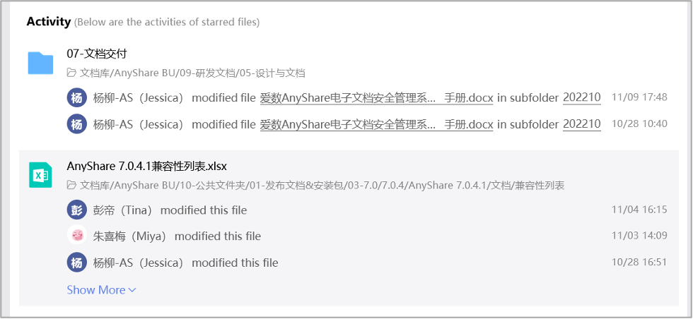 Activity, as a dynamic reminder, can help employees get updates of their starred content in real-time and get updates faster, which brings a more efficient organization.