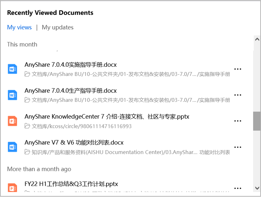 In daily work, you may usually encounter the following scenarios: want to view the starred documents on the home page; want to check the documents or knowledge which haven’t been finished reading yesterday; want to recheck the previous updates. To solve these problems, the Enterprise Content Portal has introduced the following functions: